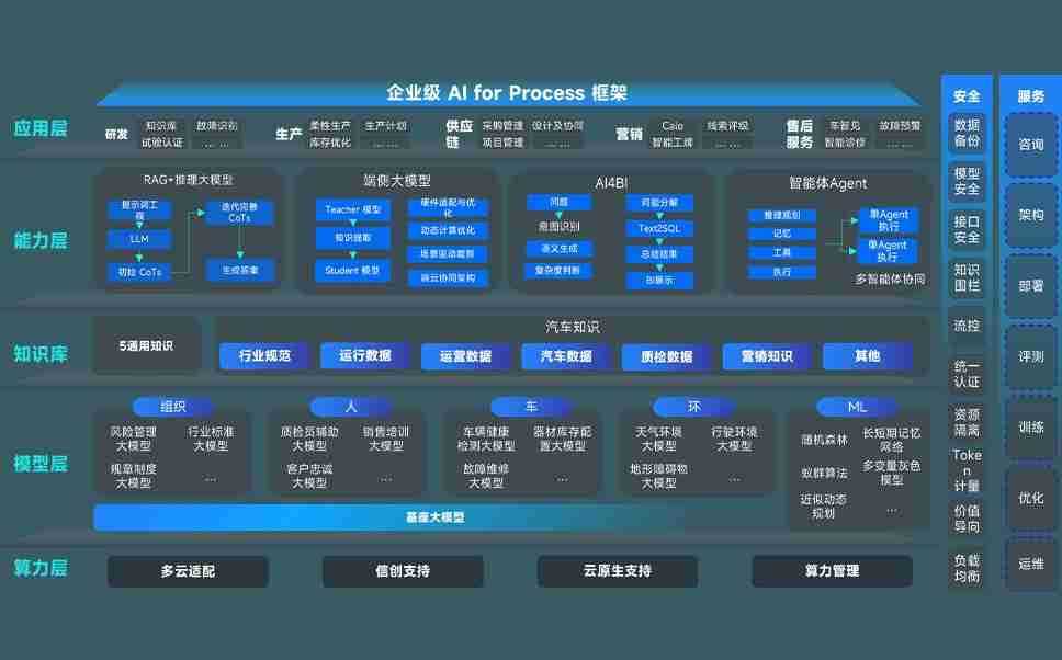 端到端的一站式AI工作空间深度融合了从企业战略规划到日常经营的全流程业务板块,,,,定向解决车企内部领域多、、、、部门多、、、、链条长、、场景碎片化等难题,,,支持车企快速构建以AI为核心的生产力写作体系,,,,实现任务执行与AI能力的无缝集成与交互